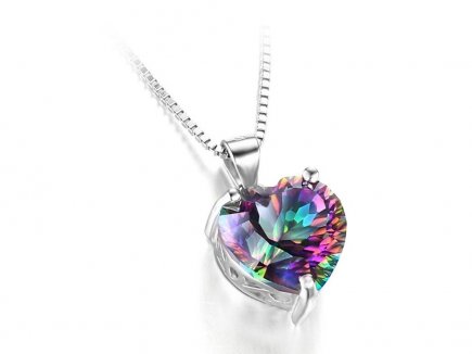 תליון רומנטי בצורת לב, הוא מנגן את כל צבעי הקשת ומוגדר בצורה יפה של כסף. סנוור בתכשיטים היפים של סביבתיך.